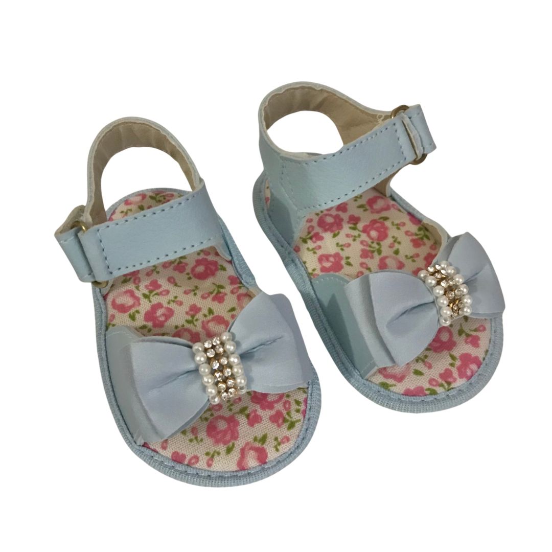 Sandalia flores, em courinho sintético, fundo com estampa delicada de flores, forro acolchoado macio para o pezinho delicado da princesa e detalhes em laço com mini pérolas pedrinhas brilhantes! ✨